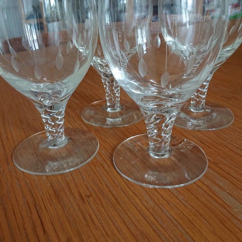 Fint vinglas til rødvin hvidvin med vinrankemotiv vinblade og druer / drueranker i slibning.