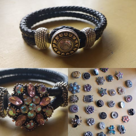 Armbånd Story i læder med flerlaget design i sort og brun. Det sorte armbånd har metalvedhæng og magnetlukning, mens det brune armbånd har mønstret overflade og magnetlukning. Velegnet som smykke til hverdagsbrug