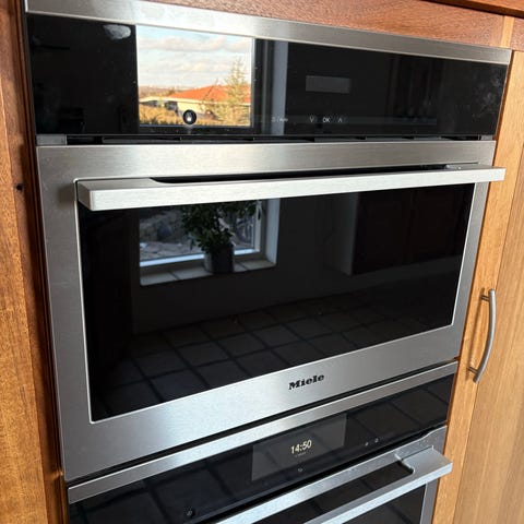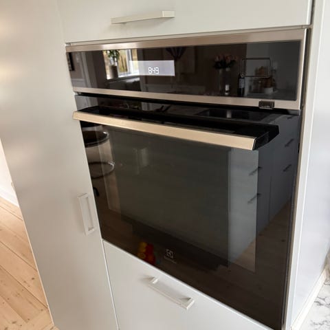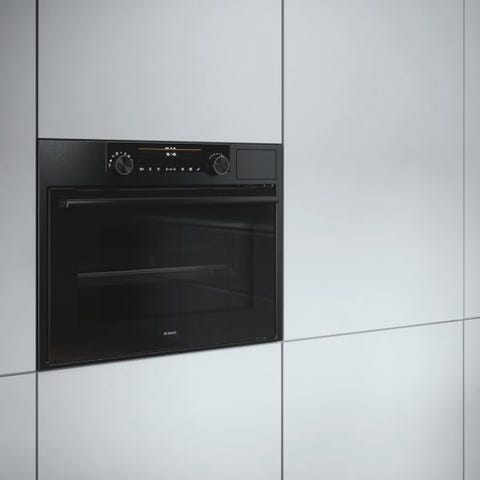 Dampovn til indbygning med rustfri stål-inderside og glasfront.