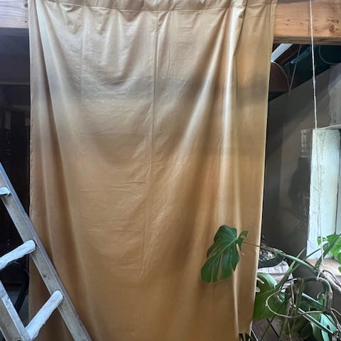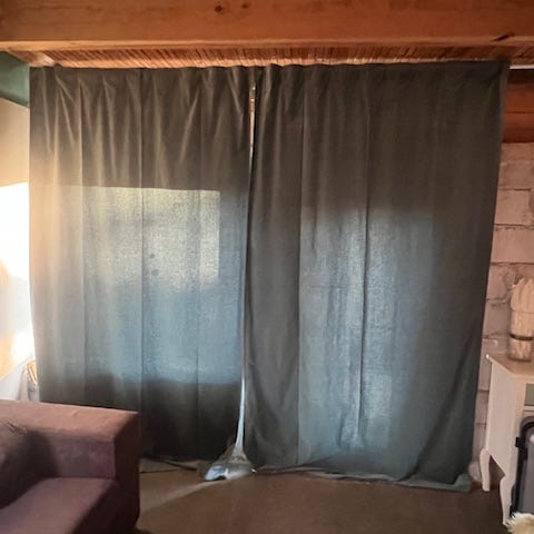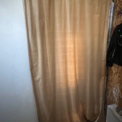 Har gardinerne i følgende farver: Mørk grå, gul, lyserød.