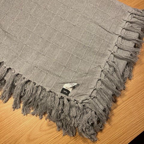 Stort HAY - Crinkle Sengetæppe 270x270 cm - Antracit Plaiden har krøllet struktur og frynser langs kanterne. Velegnet som tæppe til sofa, stol eller seng i stue eller soveværelse.