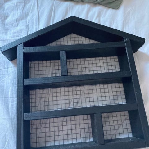 hjertehylde i grå i fin stand dog lidt ridser og mærker men ellers fejler den ingenting den er malet grå men kan sagtens males i en anden farve hvis man hellere vil det hylden kan tages af så det kun er et hjerte Men den kan også være på så det er en hylde den er beregnet til at hænge på væggen Skriv hvis du er interesseret