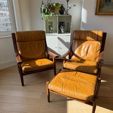 Wegner lænestol, i bøg tror jeg, med ekstra sæt hynder. Siddehynderne er lidt slidt og toppen af knapperne på siden, der vender nedad, mangler den ene knap. Det andet sæt hynder er uden knapper og i fin stand. Afhentes i Birkerød. Kom gerne med et bud.