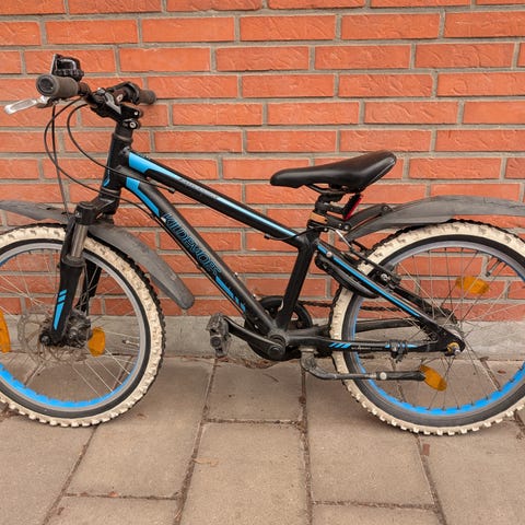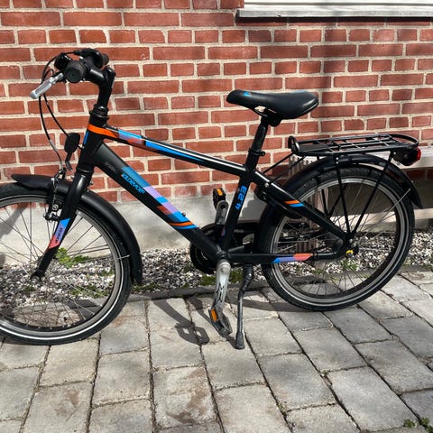 Kildemoes intruder. Børnecykel med 20" hjul i sort/grøn. Cyklen har lige styr, saddel med let polstring og grovmønstrede dæk, som egner sig til både vej og lettere grus. Udstyret med skærm foran og reflekser i hjulene. Velegnet til større børn, der har brug for en cykel i 20"-størrelse til hverdag og fritidskørsel.
