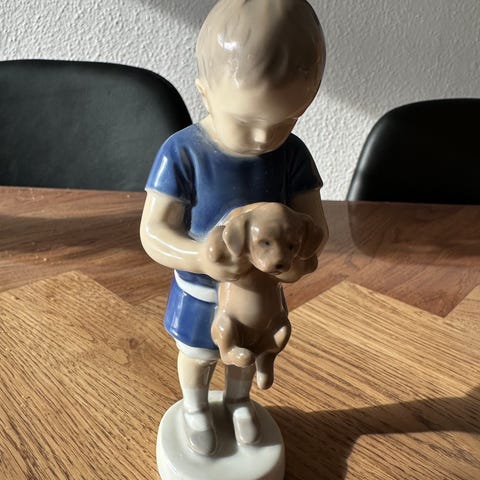 Bing & Grøndahl figur pige siddende på sten grøn porcelæn