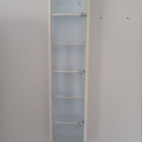 Faktisk dybde er 29,5 cm. Ophæng og skruer medfølger.