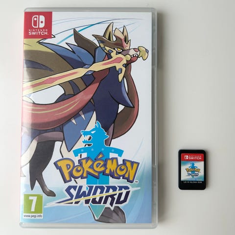 Nintendo Switch Pokémon Sword. Fysisk udgave i plastcover med spilcartridge til Nintendo Switch-konsol.