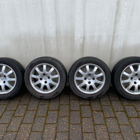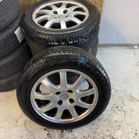 Kørt én sæson så nærmest ikke slidt. Bemærk dog at det ene dæk skal udskiftes pga skade på siden. Fælgene har også parkeringsskader, men fejler i øvrigt ikke noget.