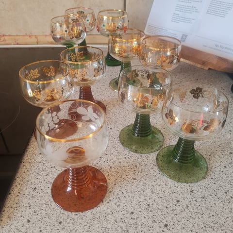 2 Rømer vin glas i sart grøn. Højde Ca. 18 cm.
