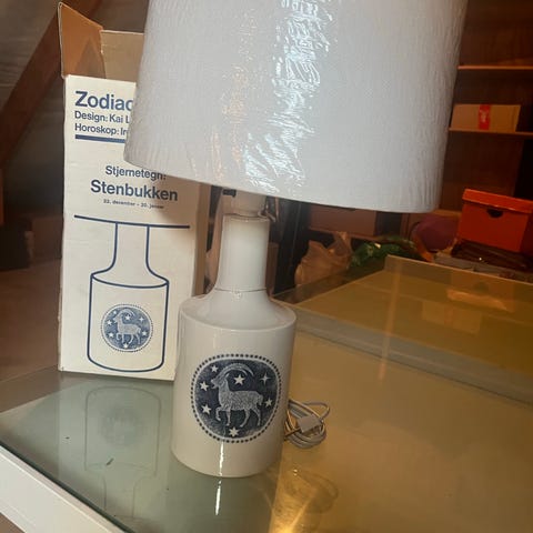 Zodiac lampe med vandmanden fra Royal Copenhagen fremstillet af Fog & Mørup. Lampen er ubrugt og har derfor uåbnet lampeskærm og original emballage.