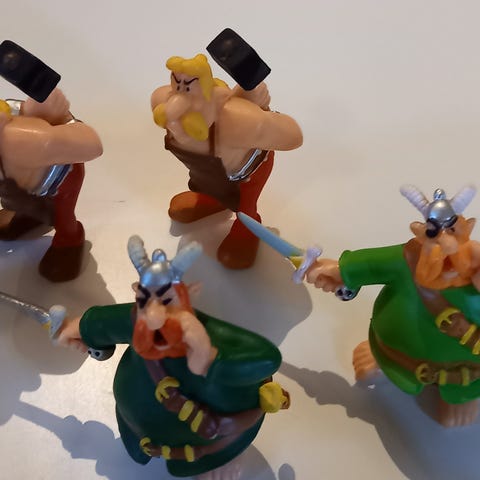 Fin samling af Asterix Figurer og andet., 52 Meget sjældne små figurer fra 1964 fra Frankrig. Kom aldrig rigtig til Danmark. Asterix, Obelix, med bautasten, Idefix, Majestix, Trubadurix, Miraculix, Kleopatra, Romere og mange flere. Plus en masse figurer fra andre tegneserier. Bl.a. Andersine. Hele samlingen for.