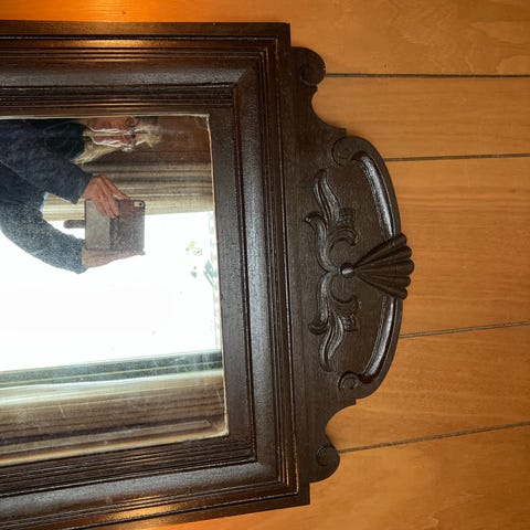 &Tradition vægspejl med rektangulær form og brun ramme. Spejlet har en profileret, ornamenteret træramme med udskårne detaljer og dekorationer i klassisk stil. Egnet til ophængning på væg i fx stue, entré eller soveværelse. Velegnet som funktionelt spejl og som dekorativt indslag i indretningen. Størrelse 60x51 cm