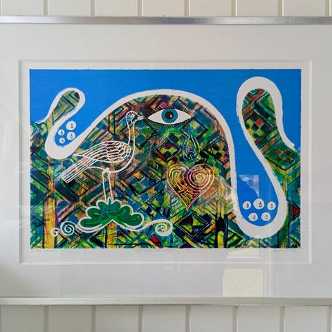 Lars Ravn litografi sæt med farvede motiver. Serien består af flere nummererede og signerede litografier fra år 2000 med figurative og fantasifulde motiver i stærke farver. Trykkene er indrammet i enkle rammer med passepartout. Velegnet til ophængning som samlet serie eller enkeltvis i stue, kontor eller andre opholdsrum.