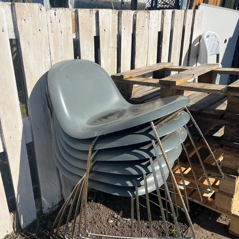 Sælges samlet. Har stået tørt, men har rust på stoleben. Trænger til rengøring