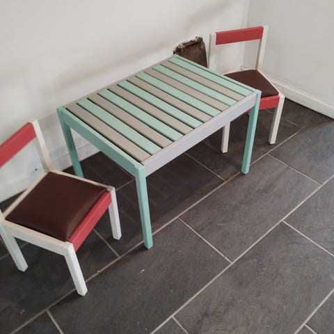 IKEA børnebord med 2 stole blå