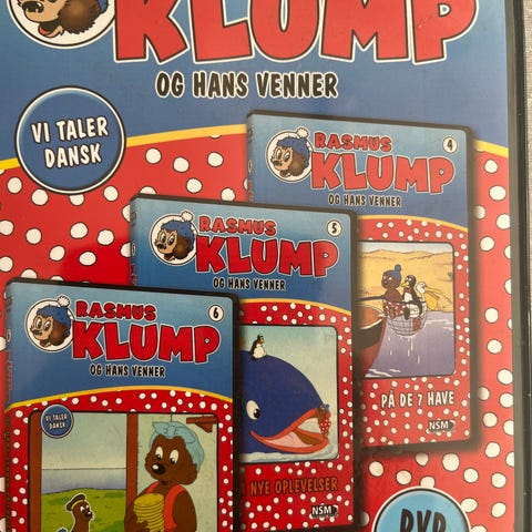 Rasmus Klump og hans venner DVD samling med dansk tale. Indeholder flere afsnit fordelt på tre DVD’er med klassiske tegnefilm om Rasmus Klump og hans venner på eventyr. Velegnet til børn, der ønsker at se serien på dansk.