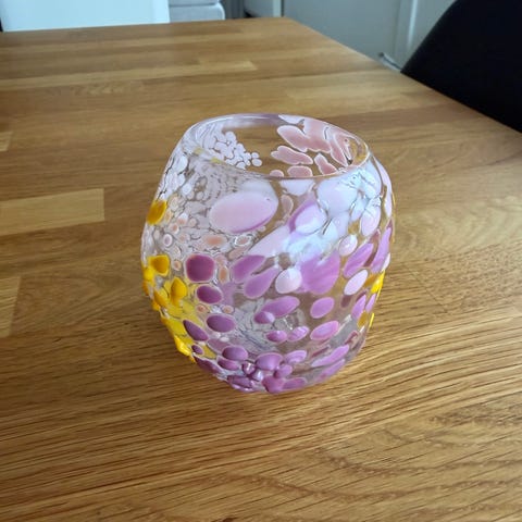 Unikt fyrfadslys keramik i lyserød farve. Kugleformet design med udskårne blomsterformede huller, der lader lyset slippe ud. Velegnet til lys og som dekorativt element i vindueskarm, på bord eller hylde.