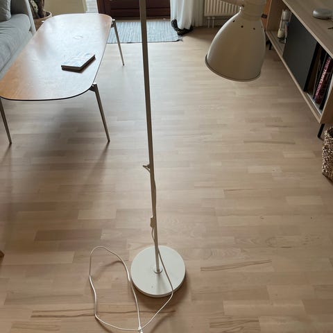 Standard gulv lampe fra Ikea, tidsløst design. Kan bruges i mange rum