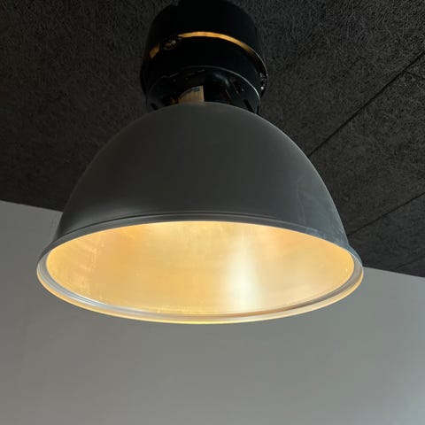 Anden loftslampe, Tidligere varmelampe nu udlevende livet som industriel loftslampe i jern.