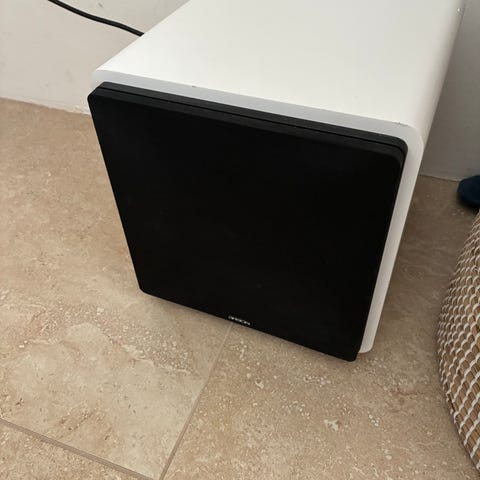 Aktiv Subwoofer fra danske Argon, købt i Hifi-klubben d. 26-07-2022, nypris 2199 kr. Kvittering haves. Spiller rigtigt godt. Ledning til tilslutning på forstærker, længde 3m, medfølger.