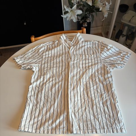 Henri-Lloyd polo til herre i størrelse XL. Poloen er hvid med mørke horisontale striber og har krave samt kort knaplukning foran. På brystet er der broderet logo. Materialet er bomuld, som giver en blød og behagelig kvalitet. Velegnet som hverdags- eller fritidstøj. Brugt med synlige brugsspor. Se venligst billederne for stand.