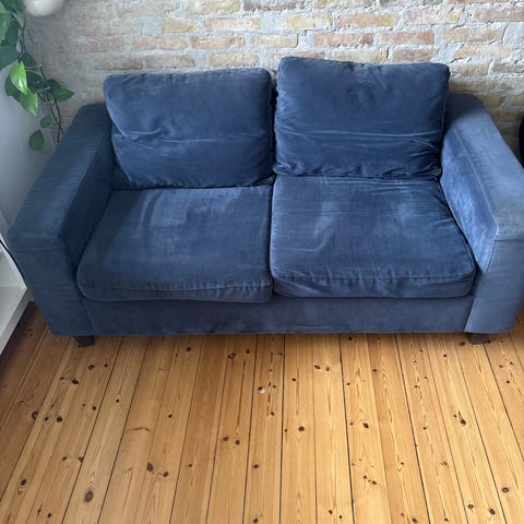 Super behagelig 2 personers sofa gives væk. Den skal hentes på Frederiksberg og bæres ned fra 2 sal.
