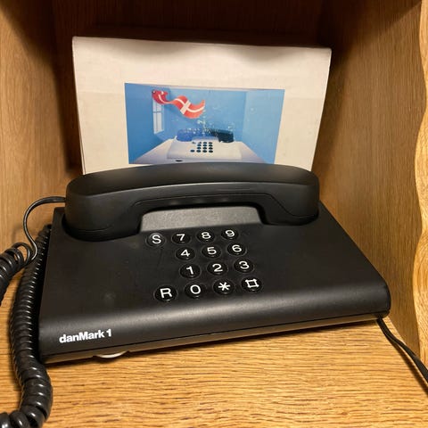 danMark 2 fastnettelefon i rød farve. med sort rør.
