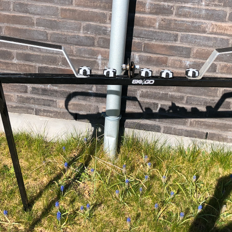 Sparkstøtting slæde i metal og træ.
