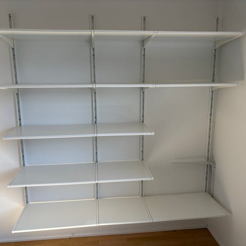 Algot garderobesystem fra IKEA (udgået). 2 Hylder og 2 bøjlestænger, bukseholder og ekstra bøjlestang følger med.