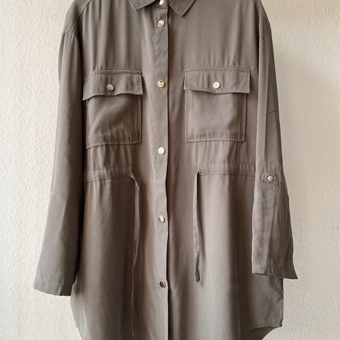 Str S. Måler ca 56 cm fra ærmegab til ærmegab og ca 85 cm fra skulder og ned. Bælte mangler. Brugt et par gange