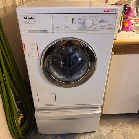 Vaskemaskine virker som den skal. Skal bæres op ad fem trin fra kælderen.