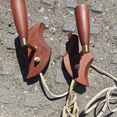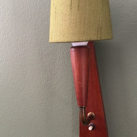 Fin væglampe i teaktræ.