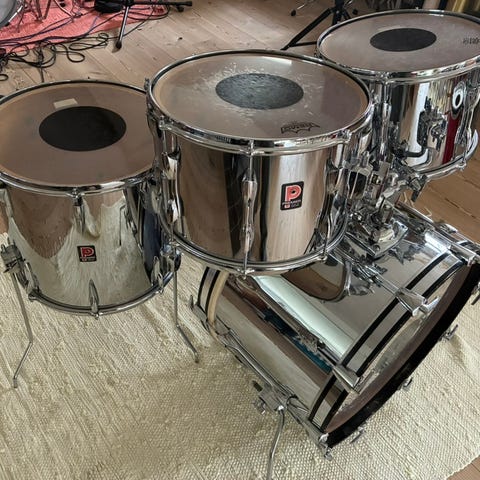 Premier Resonator trommesæt i naturfinish. Sættet består af stortromme, hængende tammer og gulvtam med kromhardware. Resonator-serien er kendt for dobbelte kedler, hvilket giver fokuseret klang og god resonans. Velegnet til både øvelokale og livebrug, og kan kombineres med valgfri bækkener og hardware efter behov.