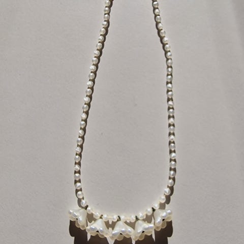 Hvid halskæde, total længde 44 cm