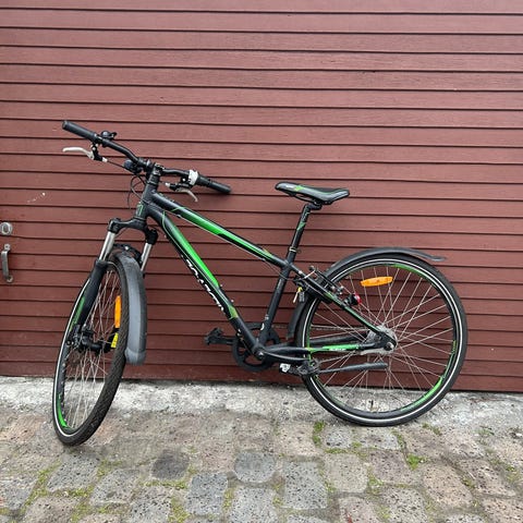 26”/43 cm. Farve: Soft Black/Green. Fra 2019. Har 7 indvendige Shimano Nexus gear. 2 håndbremser og fodbremse. Støddæmper ved forhjul. Inklusiv godkendt lås med nøgle, skærmsæt, flaskeholder og cykelcomputer med vejledning. Servicehæfte med stelnummer fra Fri Bike-shop.