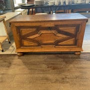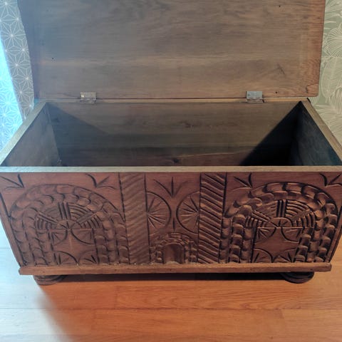 Kiste i eg med relief på front