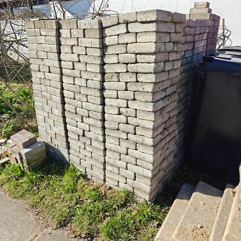 Grå beton belægningssten (farven hedder vist dog “sort”) str 14x21x7cm. Der er 512 stk lig ca. 15m2. Stenene er stablet på palle og skal bæres et lille stykke ud til bilen - men så er de også gratis:)