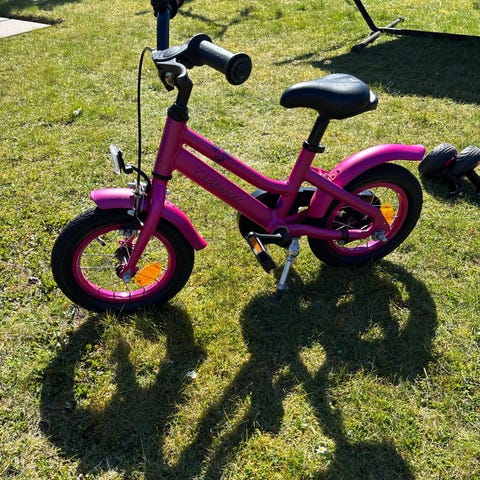 Den sejeste Kildemoes Børnecykel med 12" hjul i pink farve. Cyklen har ekstra gear kurv foran, ringeklokke på styret og glimmer gejl på håndtag (kan nemt tages af efter ønske) , som kan ses på billederne. Udstyret med kædeskærm, skærme over hjulene, hånd og fodbremse og reflekser. Den perfekte første cykel til mindre børn, der skal lære at cykle med 12" hjul.🛞 nypris 1899 kr