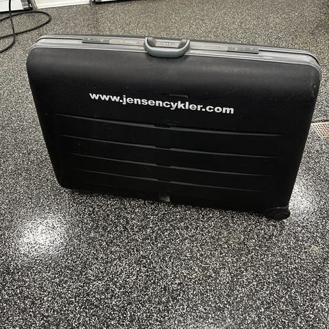 Brugt cykelkuffert sælges, den har været brugt 4-5 gange, og der er nogle synlig brugstegn udvendigt.