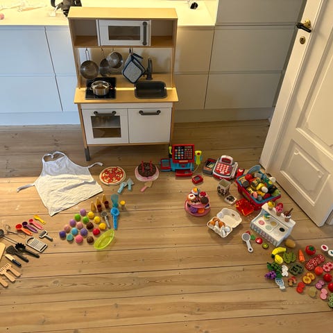 Derudover medfølger der afsindig meget lege mad, hvoraf størsteparten er lavet af træ.