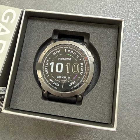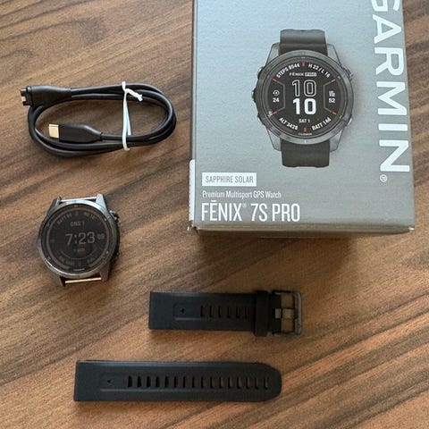 Garmin Fenix 7 med sort titanium metalrem. 47mm Safirglas og solar opladning. Uret leveres i original emballage med ekstra led til remmen samt en ekstra sort silikonerem. Urkassen er rund med flere fysiske knapper i siden. Velegnet til hverdagsbrug og aktivitet, hvor der ønskes et digitalt sportsur med udskiftelig rem. Uret er yderst holdbart og velegnet til fritid, fest og sport. Lang batterilevetid og 2 ladekabler medfølger. Et til derhjemme og et til hos kæresten.