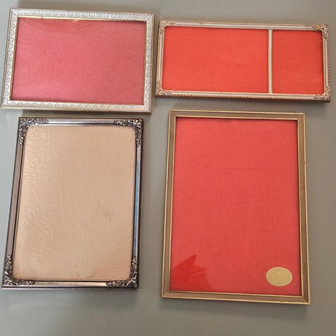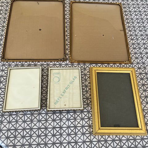 Sættet består af én større og to mindre rammer i samme stil. Rammerne har dekorativ, ornamenteret kant og er velegnede til fotos eller små plakater. Farven er guld, og rammen kan bruges både stående og liggende afhængigt af ophæng eller placering.