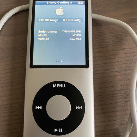 Apple iPod nano musikafspiller i grøn farve. Kompakt MP3-afspiller med klik-hjul til navigation og lille farveskærm på forsiden. Enheden har metalhus og tilsluttes med kabel til synkronisering og opladning. Velegnet til afspilning af musik på farten og opbevaring af musikfiler fra computer via iTunes eller tilsvarende software.