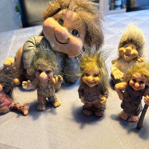 Små trolde i huse, Søde baby-trolde i deres små huse på forskellige grunde.