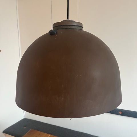 Københavner pendler 2 styk. Hængt i Københavns gader, omlavet til pendler, med 230V fatning. Måler 46 cm i diameter.