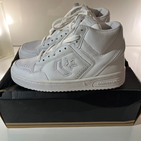 Reebok Classic sneakers i størrelse 37,5. Modellen er en høj sneaker med snørebånd og velcrolukning ved anklen. Skoene er hvide med Reebok-logo på siden og hælen. Overdelen fremstår i glat materiale med perforeringer ved forfoden for ventilation. Ydersålen er mønstret for bedre fodfæste. Velegnet som hverdagssko eller til let træning.