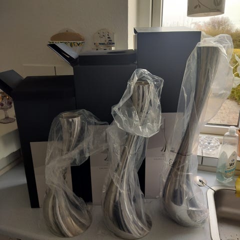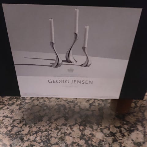 Helt nye Georg Jensen lysestager i æske sælges. Kan sendes på købers regning eller afhentes på adressen. Kontakt Susanne mobil 5369 7116