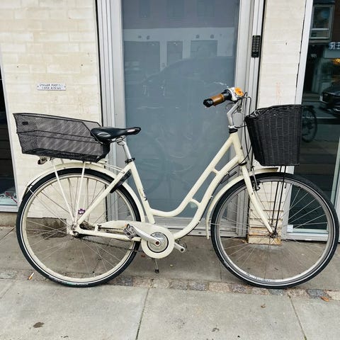 Jeg sælger denne cykel for min mor. Den har 7 gear, godkendt lås, cykel lygter og km tæller. Den er i god stand, men har stået i et skur i længere tid, derfor trænger den til rengøring. Den ene stang til skærmen er løs. Prisen er sat derefter.