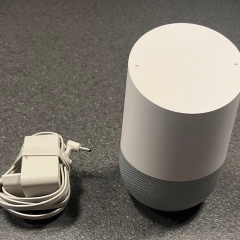 Google Nest Audio højttaler i grå. Smart-højttaler med indbygget Google Assistant til stemmestyring af musik, radio og kompatible smart home-enheder. Designet til brug der hjemme. Understøtter trådløs afspilning via Wi-Fi.