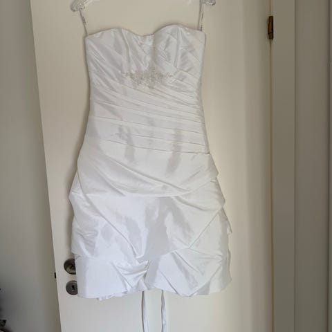 Der hører desuden et fint hvidt sjal med til kjolen, som intet fejler.